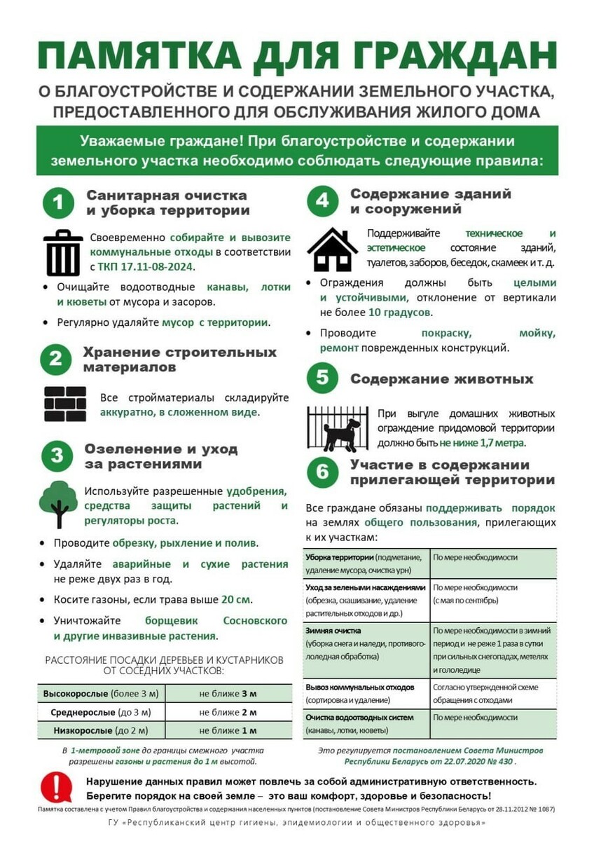 • очистите от мусора придомовую территорию и территорию, прилегающую к Вашему участку;